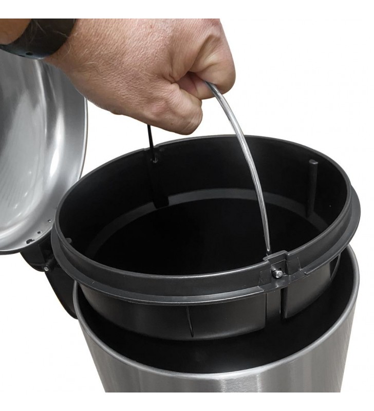 CESTO REDONDO CON TAPA Y PEDAL, ACABADO SATINADO Y ANTIHUELLAS