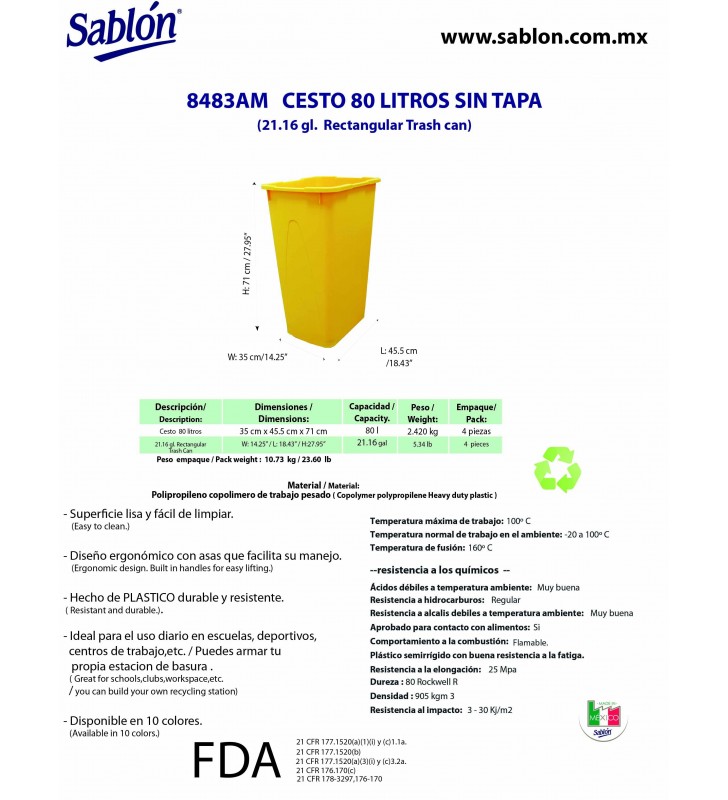 BOTE REDONDO 80 LITROS CON TAPA EMBUDO GRIS 8494GR