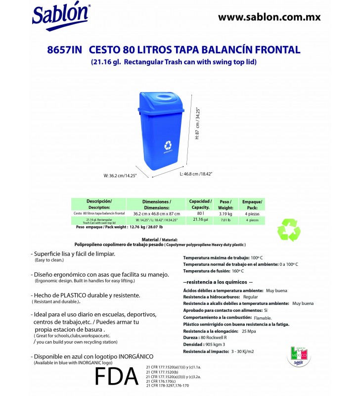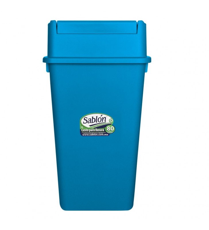 CESTO REDONDO NEGRO 80 LITROS CON TAPA BALANCIN LISO VERDE 8716VD