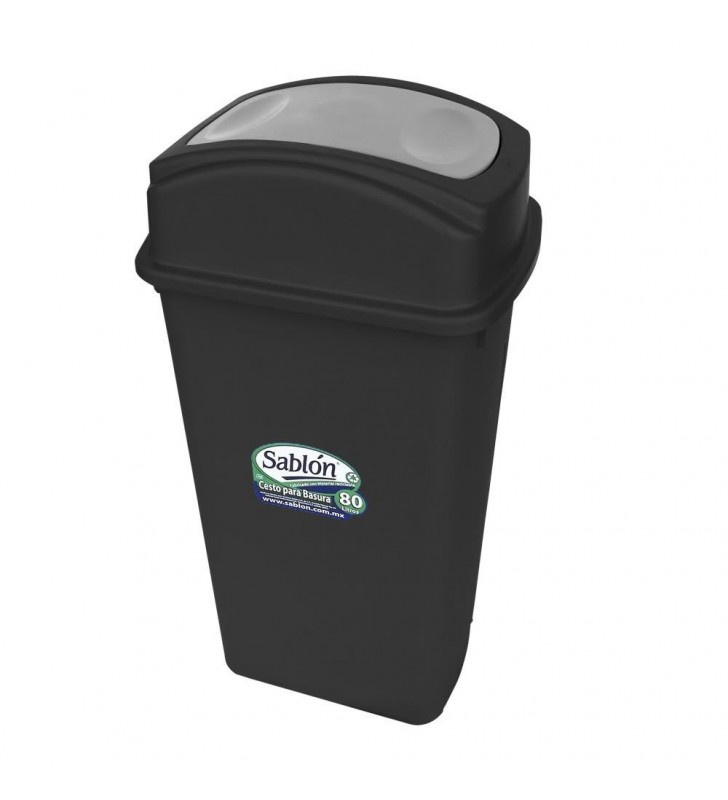 CESTO 80 LITROS NEGRO CON TAPA BALANCIN LATERAL GRIS 8434GR