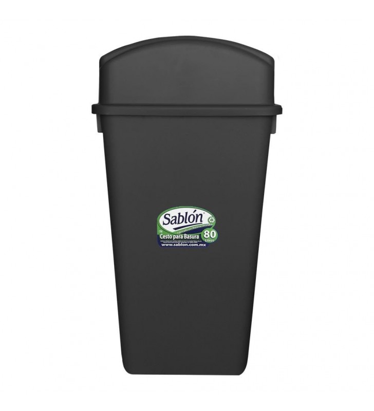 CESTO 80 LITROS NEGRO CON TAPA BALANCIN FRONTAL VERDE 8456VD